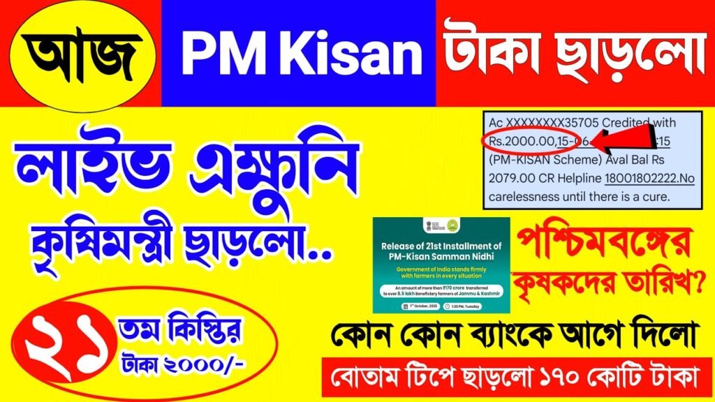 PM kisan Yojana 21th kist প্রধানমন্ত্রী কিষাণ যোজনার ২১তম কিস্তির তারিখ প্রকাশ